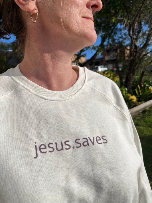 jesus.saves Slouchy Sweatshirt- Cream + Mauve
